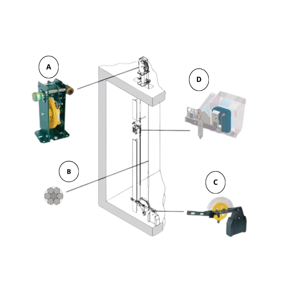 A. Limitador de velocidade – O protagonista – normalmente localizada na casa de máquinas, responsável por monitorar a velocidade do movimento da cabine e movimentar o cabo através da polia motriz;